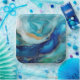 Experience the tranquillity of the sea with this abstract oil painting paper plate, where cobalt blue and teal waves merge seamlessly with green undertones."
