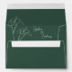 A minimalist, modern and elegant emerald green wedding envelope featuring two elegant one-line drawn white Calla Lilies against a deep emerald green background. The inside of the envelope features your names and the same white calla lily imagery. An elegant and lively handwritten calligraphy font set states your names and return address.