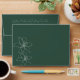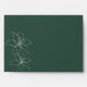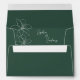 A minimalist, modern and elegant emerald green wedding envelope featuring two elegant one-line drawn white Asiatic Lilies against a deep emerald green background. The inside of the envelope features your names and the same white lily imagery. An elegant and lively handwritten calligraphy font set states your names and return address.