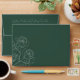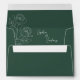 A minimalist, modern and elegant emerald green wedding envelope featuring elegant one-line drawn white Roses against a deep emerald green background. The inside of the envelope features your names and the same white roses imagery. An elegant and lively handwritten calligraphy font set states your names and return address on the back flap.