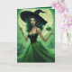 Whimsical and spooky seductress the Emerald Witch holding her emerald green mini pumpkin looking for the little weasel man who jilted her for baking him and unripened pumpkin pie. When she finds him she will put a curse on his hair to never grow again unless it comes in emerald green.