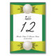 Help your friends and family find their assigned tables in style with some beautiful custom table number cards. This table number card features a charming pearl and golden yellow ribbon design on a calming emerald green background. Spring or summer weddings would be beautifully complemented with the lush green and lively yellow colours featured on this table number card. The names of the bride and groom can be elegantly displayed on the front and back of the card. Be sure to include the wedding date of the happy couple on the front and back of the card as well.
