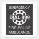 Emergency Dial 999 Sign Fire Police Ambulance Square Sticker
