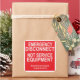 A sheet of six, 3" x 3" EMERGENCY DISCONNECT, NOT SERVICE EQUIPMENT sticker labels with Spanish subtitles for electricians to label electrical services. Desconexión de emergencia, no equipo de servicio