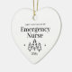 First Christmas as an emergency nurse heart ornament for a new job in nursing in the ER. Elegant porcelain ceramic holiday ornaments in white with black lettering. Featuring Christmas trees and stars.