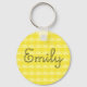 Cute keychain in small yellow hearts pattern with Emily name printed on it.