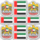 Four Custom-cut vinyl stickers with the coat of arms of United Arab Emirates and seven stickers with the Emirati flag in the centre