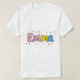 The name "Emma" is colourfully displayed with each letter in a different hue, surrounded by small symbols such as stars and hearts. A playful design adds a cheerful element against a dark brown background.