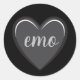 This classic black and grey heart sticker features the the text emo at the centre. You can customise this to make it your own. The design is simple and sophisticated.