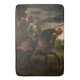 This design features a painting by the Italian Renaissance painter Titian (1488–1576), who is often considered the most important member of the 16th-century Venetian school. It depicts Emperor Charles V, the Holy Roman Emperor, on horseback at the Battle of Mühlberg that took place in 1547 during the Schmalkaldic War. The fighting occured within central Europe, in the region of modern-day Germany. Charles V is holding a lance and he is wearing a full suit of armour, including a helmet, as he rides his black horse into battle. The horse is wearing an elegant red coat made of opulent fabrics. The original artwork was painted by Titian in 1548, and it is now housed in the Prado Museum in Madrid, Spain.