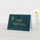 This is an Employee 5 Years Anniversary card in shades of jade with the centrally placed text, Happy Anniversary. The text is placed on two round edged rectangles, one slightly darker than the other. The top rectangle also has a fine gold coloured border and both rectangles have a drop shadow.