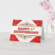 This is a strikingly eye-catching Employee 8th Anniversary Card featuring the text 'HAPPY 8th ANNIVERSARY' on a rectangular white background with dark grey and digitally simulated gold foil effect borders. The words 'HAPPY ANNIVERSARY' are overlaid with a bright red, orange and dark grey pattern, and the '8th' is overlaid with the same digitally simulated gold foil effect as the border. Behind this is a white octagon with decorative elements above and below the central text and a fine digitally simulated gold foil effect border. The background consists of a red, orange and dark grey pattern.