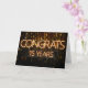This is a fun Employee Anniversary 15 Years Congratulations card featuring the text CONGRATS 15 YEARS in a yellow glow neon effect, set against a dark background with drop down, haze and glow effect, string lights.