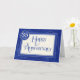 This is a 35 Years Employee Anniversary Card featuring the centrally placed text 'Happy Anniversary' written in blue in an attractive font with swirls on some of the letters. The text also has a silver sparkle effect edging to the right and a slight damask texture overlay. The text is on a pale cream text box with a linen effect overlay and blue narrow border outline detail. A drop shadow gives the text box a slight 3D effect. Behind the cream text box, is a blue border with silver sparkle effect edging and drop shadow. On the top left corner of the text box is a digitally created badge which is blue with a silver sparkle effect wavy border and drop shadow. On the badge is the text '35 YEARS'. The main background is blue with a damask pattern overlay and a few very fine, silver sparkle effect curves and swirls.
