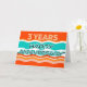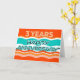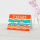 This is a brightly coloured Employee 3rd Anniversary card in red, orange and jade featuring waves of colour and the text, HAPPY ANNIVERSARY in a fun stripy, flowing font. At the top is the text 3 YEARS, in a contrasting, plain, bold font with orange and white patterned detail.