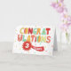 This is a fun and colourful Three Years Business Employee Anniversary card featuring the word 'CONGRATULATIONS' which is in a bold, hand written effect, capital letters font in a celebratory combination of colours. The colours are red, peach, orange, pale green and pale yellow with some decorative gold sparkle effect elements. The word is written horizontally across the design with 'CONGRAT' above 'ULATIONS'.