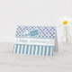 A fun, colourful Employee 40th Anniversary card featuring a large blue polka dots on white pattern in the top half; some of the polka dots have a silver sparkle effect overlay, and a bold, jade and white vertical stripes pattern, with the addition of decorative interspersed thin silver sparkle effect vertical lines, in the bottom half.