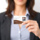 This design offers a placeholder for your logo, ID number, photo, and bar code.
