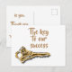 The image on this postcard features a gold and silver swirled key. The text on the front says, "The key to our success" with the back saying, "is you. Thank you" along with your business name. All text can easily be changed to suit your needs. This is a inexpensive yet impressive way to say thank you to your employees, customers, or clients. Stand out from other businesses by expressing your appreciation to those who help your business grow and succeed.