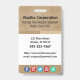 Vertical Employee ID badge with two shades of beige plus mottled beige background. All elements are changeable or removable. Front of Badge Elements include: employee photo, employee name, employee department, company name and tagline. company address, phone number, website and email addresses. Back of design also has company info which is all customisable. Also available in horizontal orientation. Slot at top for lanyard. All of these elements can be changed or deleted.
