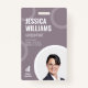An employee ID card featuring a personal photo. The design shows the employees photograph in the lower right corner, as well as the employee name in bold white letters. Furthermore it includes the employees occupation and badge ID number. The modern staff badge can be personalised with your company's logo and business name. Add more information, such as a bar code or employee contact details to the back if desired. The colours can be personalised to match your company's colour scheme.