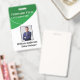 Vertical Employee ID badge with two shades of green background. All elements are changeable or removable. Front of Badge Elements include: company name, employee photo, employee name, employee department. Back of design has security barcode scan. Available in horizontal orientation. Slot at top for lanyard. Back of Badge Elements include: company name, employee ID number, employee department, employee email, employee phone and extention and security bar code. All of these elements can be changed or deleted.