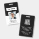 Minimal and modern style professional company/business employee photo ID badge in a classic black and white colour theme. Customise with your company's logo and employee's photo, change the background colour or leave as shown here. Add your URL for the QR Code on the back or remove if not needed. There is a text box to add further information on the back. Please browse other employee/business badge designs in the Employee ID Custom Photo Logo Badge Collection.