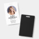This design features a corporate employee classic standard, retail small business hospital clinic, security photo name and title, business personnel staff employee, simple basic standard, standard office basic minimal, building access event staff, staff name picture photo id, custom security id badge, modern black and white clean