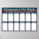 Hang this industrial style 30x20 full year Salesperson of the Month or Employee of the Month poster on any handy bulletin board and fill with your employees' 4x6 photos every month. Add your own company's appreciation message, and change the background color to suit your decor. The perfect addition to your staff recognition, motivation and incentive programs.