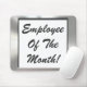 Silver metal plate (not actual metal, chrome) printed surface background 3d frame mousepad. "Employee Of The Month!!" text with bold script style font in black on a white background. Great gift to honour your hard workers and their achievement and success! Easily personalise by changing or adding any text or image, or change, or delete this background template with your own photo or image. Style of text and the colour of the text can also be easily changed, as well as the the white background colour can be changed easily. Just click on "Customise it" and then click on "edit" and then "background" to change it. Note that this realistic design is not actual metal. Buy in bulk for the whole year and save!