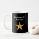 Classy employee of the Year coffee mugs including a gold coloured star and text templates you can customise. Designed as a reward for good office deeds or excellence in productivity you can give to your employees in an inexpensive way. Design is displayed on both sides of the coffee cup for right or left handed drinkers.