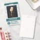 These photo ID badges have a teal-and-light-grey colour theme. They include your employee's photo, name, and job title on the front, plus the name of the corporation / company and business logo. The back includes room for "if found" information (including address and phone number), plus space for an ID number and a bar code. The design also includes a grid pattern background and a line graph theme. Use the easy template to personalise, and then use the design tool to make more detailed changes (such as adjusting the size of the logo or barcode or deleting and rearranging elements). This eye-catching design is perfect for an office manager, administrative assistant, executive, or any business employee.