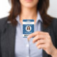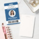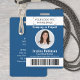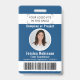 Represent your business in style by supplying staff with with modern and professional identification badges. The Logo, photo, bar code and all wording on this template are all simple to customise. The blue and white design features your company logo, one round picture, employee name and title, and your UPC / barcode. It can provide organisation and security for company staff, while presenting the corporate branding with a stylish classic appearance.