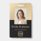 Make a professional and stylish impression with this sleek employee ID badge. Featuring a modern design with clear lines and gold brushed metal details, this badge is both visually appealing and easy to read. Customise the badge with your employee's name, photo, job title, and additional information on the back to create a personalised and professional look. This badge is perfect for businesses of all sizes and can be used in a variety of settings.