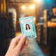 Employee Photo ID QR Code Your Logo Teal Blue Arc Badge