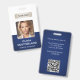 This Employee Photo ID with QR Code and Business Logo Badge is crafted for modern businesses that value both security and sleek design. Its navy blue colour scheme sets a professional tone, while customisable fields for photo, name, position, logo, and QR code ensure complete functionality.