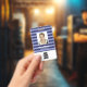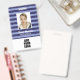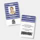 Personalise this blue striped employee ID badge with name, photo and logo. On the back you can add useful information like address, website, ID number and barcode.