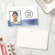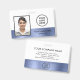 Simple, elegant and chic employee photo ID badge with a blue faux metallic strip. Customise the front with your logo, employee photo name and job title. On the reverse, add your company name and other information.