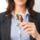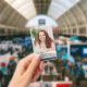 A simple design features an employee photo badge with name and title, perfect for company corporate, custom security, perfect for business personnel staff, with a barcode bar QR code, a standard office supplies, with a simple minimalist, basic clean, trade show event.