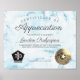 Blue marble background on this universal employee or volunteer certificate of appreciation display poster, personalized with recipient's name, signee name, replace your logo, and text as desired.