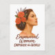 A woman with roses and lavender in her hair gazes confidently to the side. The text 'Empowered Women Empower the World' is elegantly displayed.