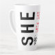Start your day with a burst of positivity and self-assurance with our "Empowering Affirmations for Her Latte Mug." Featuring the bold and striking word "SHE" on the left, this design is complemented by a series of uplifting affirmations in vibrant red text: "SHE IS CONFIDENT," "IS STRONG," "IS MOTIVATED," "IS BLESSED," "IS HAPPY," "IS BEAUTIFUL," and "IS ENOUGH." Each sip from this mug serves as a reminder of your strength, beauty, and worth, making it the perfect companion for your morning coffee or tea ritual. Embrace the power within you and inspire others with this motivational latte mug.