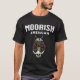 I give wanted to give this a 4 instead of a 5 because these Basic DARK T0shirts run unexpectedly SLIM or Narrow. Which is great if you do not have a potbelly, but I have a paunch. It isn't the shirt's fault that I've got a beer belly. The design and shirt itself is a quality cotton shirt. The color is more of a deep purple, but still a very pretty color. The Basic DARK T-shirts run a bit SLIMMER than the Basic Ts. The neck is a fraction narrower (or seems to be narrower) also. I'm a paunchy middle-aged woman and my neck is 12 inches (31cm) thick and the neckline fell about the same as in the photo of the man, and I had the desire to tug it a bit. So if you're a thick necked man or like loose shirts, be aware these are slimmer shirts. Once I get rid of my lockdown paunch it'll look great. The shirt washed well in cold water with no apparent bleeding. We don't have a dryer, so it hung dry. Did not shrink. Love the colors and the design. The design looks smaller on my shirt than it does on the model on-line. But still, it looks good on the shirt. The printing looks as it does on the model, just the size seems fractionally smaller. Washed garment in cold water, hung dry and design appeared unaffected.