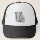 Empty metal trash can trucker hat