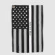 This golf towel features a black, grey, and white thin white line American flag perfect for EMS and EMT first responders. Personalise by replacing the sample name with your own name. Makes a great gift for golf lovers.