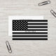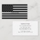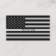 For EMS EMT first responders this is a professional business card. The front of the card features an American Flag with the thin white line with a name on top in black typography. The back of the card has black text on a white background and includes all of your contact information, name, place of work, phone, email, website and address.