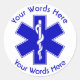 This custom sticker is decorated with a Emergency Medical Technician Shield that can be customised with a choice of words above and below that allow you to personalise it with the name of a person, place, position, etc.