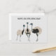 The message on the front of this postcard can be customised with your own greeting. The text appears above realistic style illustrations of three emus. The reverse side of this postcard is blank so that you can write in your own message.