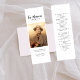 Capture the profound essence of cherished memories with our "En Memoria Spanish Funeral Photo Bookmark Card". Delicately scripted in calligraphy, "En Memoria" graces the front, serving as a loving tribute. It holds within its fold a treasured photo, the enduring name, and a heartfelt Spanish verse—an embrace of eternal love and heartfelt sentiments.