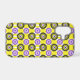 iPhone 17 case with a seamless modern geometric mirrored flower pattern in the colors of the non-binary pride flag; a yellow, purple, black, and white enby pride design, a pattern on a yellow background